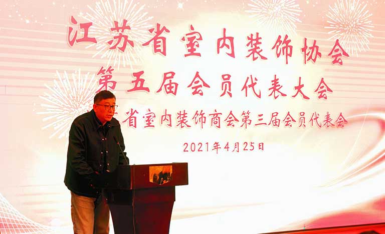 2021年4月25日,江苏省室内装饰协会在古都南京风凰台饭店百合花厅隆重召开第五届会员代表大会,顺利完成换届工作。大会审议通过了协会第四届理事会工作报告并选举产生了第五届理事会理事、监事和理事会领导机构。